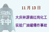 2002年11月13日,黑龙江大庆市大同区林源镇红岗化工实验厂发生一起油罐爆炸事故,造成4人死亡,3人受伤。