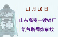 1995年11月18日,山东高密县咸家镇镀锌厂一氧气瓶内混入可燃气体发生爆炸事故,造成1人死亡,1人受伤。