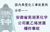 1998年8月5日上午6时20分,安徽省芜湖某化学有限公司聚氯乙烯厂,因氯乙烯单体泄漏发生爆炸事故,造成5人死亡、4人重伤、3人轻伤,直接经济损失84.58万元。 一、事故经过和危害 发生