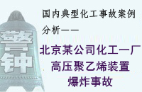 1993年10月22日,北京市某公司化工一厂高压聚乙烯装置切粒机厂房发生爆炸。事故造成3人死亡、2人重伤、2人轻伤。 一、事故经过和危害 1993年10月22日10时,高压聚乙烯车间第一条生产线