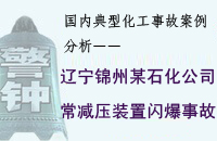 2003年9月12日,辽宁锦州某石化公司300万吨/年常减压装置检修后进行开车,17:10分在减压炉点火时,发生闪爆事故。事故造成3人死亡、1人重伤、5人轻伤的严重后果,同时造成炉壁及框