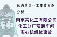 1995年3月4日下午2:20分,南京某化工有限公司化工分厂磺酸车间发生1号离心机在运行过程中解体,事故造成3人死亡,经济损失达10.415万元。 一、事故概况 化工分厂磺酸车间于92年10月竣