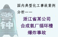 国内典型化工事故案例分析 浙江省某市化学工业公司合成氨厂循环槽爆炸事故 1973年7月31日8时,浙江省某市化学工业公司合成氨厂造气车间脱硫1号循环槽发生爆炸,事故造成3人死亡,