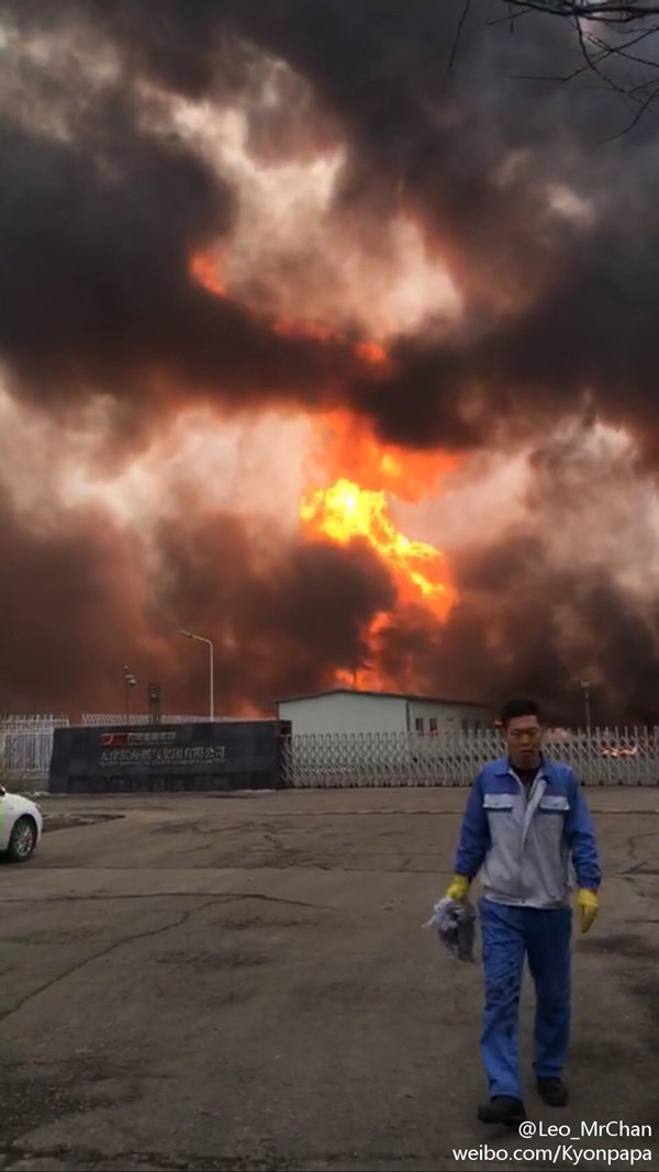 搜狐公众号极光注意到,多名微博用户爆料,天津滨海新区临港工业区发生爆炸,地点为某燃气公司。多个照片和视频显示,现场火光冲天。有当地居民称,“大概在10点50分发生爆炸”,“在临港燃气公司附近”,“现在火情基本控制住了”。