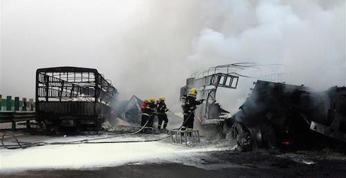 甘肃天水危化品车被追尾后起火 造成1死1伤