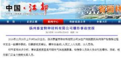 12月26日上午9点多,扬州市江都区大桥镇的扬州泰富特种材料有限公司发生爆炸,爆炸共造成1人死亡,1人失踪,18人受伤。经专家组初步分析,事故直接原因是可燃性气体泄漏聚集,检