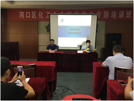 河口区安监局刘兆星局长主持开班仪式并发表讲话。他指出,中国化学品安全协会与河口安监局一直保持友好的合作关系,此次培训机会难得,希望参训人员严肃对待,利用此次机会掌握特殊作业的办理流程,避免由于特殊作业发生事故。
