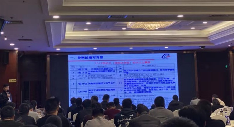 应浙江省应急厅邀请,12月5日,中国化学品安全协会派技术专家孙志岩赴浙江杭州,在浙江省危险化学品安全监管人员培训班上,为全体人员讲授了《危险化学品企业安全风险隐患排查治理导则》。