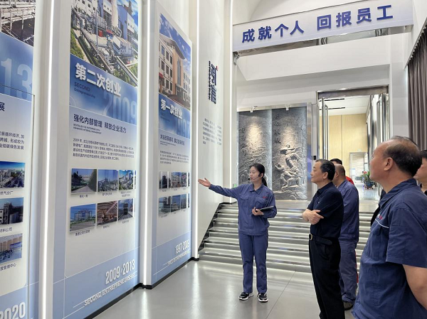 调研过程中,路念明一行先后到企业捣固焦炉生产现场、焦炉煤气制无水乙醇项目、燃气轮机联合循环发电项目、5G智慧调度中心和企业文化展示中心参观考察。