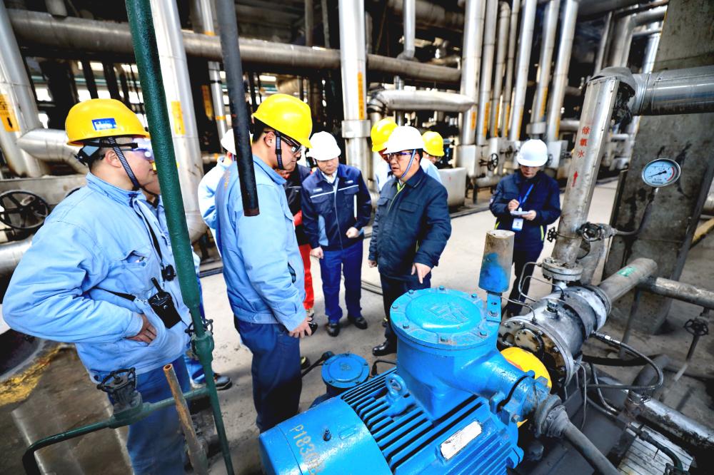 上图为郝军在京博石化生产现场查看安全管理等情况。