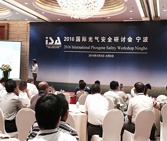 9月8日—9日,2016国际光气安全研讨会在宁波召开。来自国内外的万华化学、沧州大化、甘肃银光、巴斯夫、科思创、上海联恒、三菱瓦斯、亨斯迈等企业和上海化学工业区医疗中心、赛鼎工程有限公司等20余家光气生产及使用企业、设计研究单位、医疗机构的80余人参加了会议。协会应中国聚氨酯工业协会异氰酸酯专业委员会的邀请,派员参加了会议。