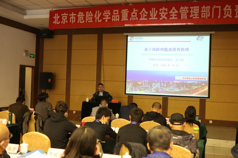 2020年10月26日,中国化学品安全协会法规标准部主任太文哲应邀为北京市危险化学品重点企业安全管理部门负责人就《危险化学品企业安全风险隐患排查治理导则》进行宣贯。