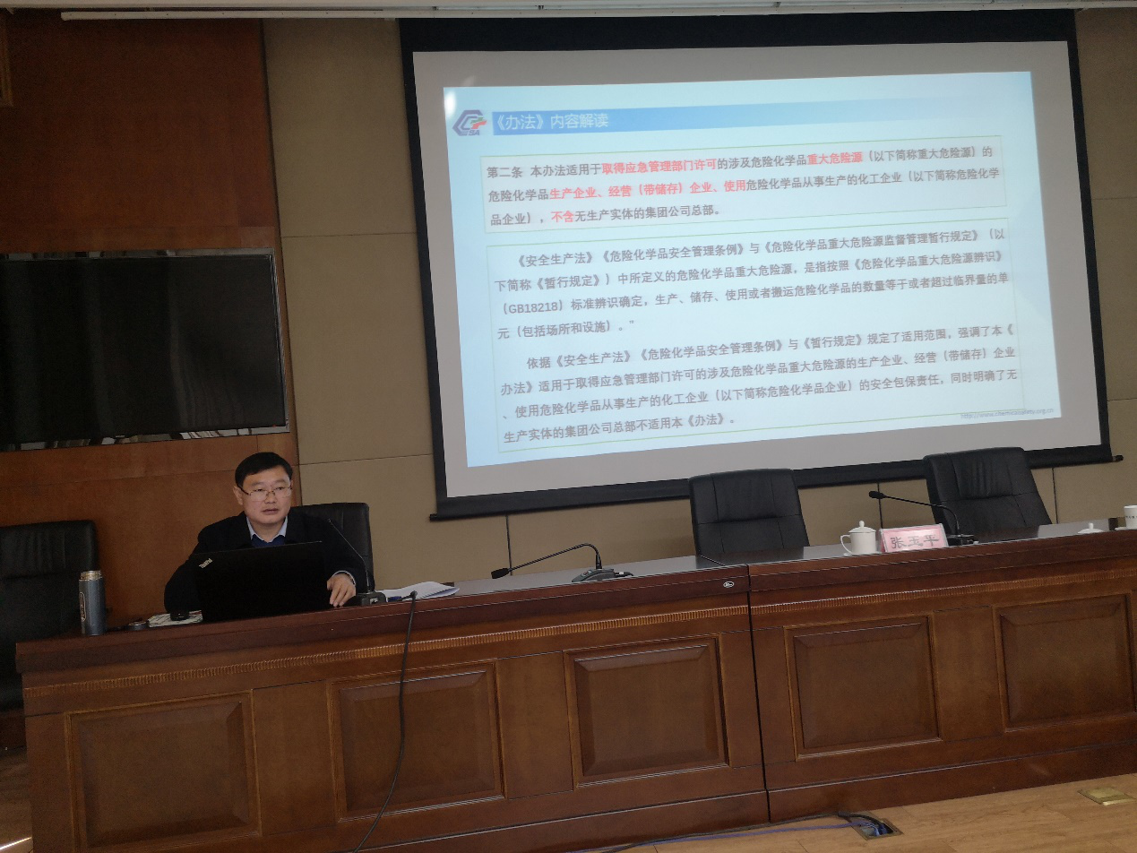 应东营市广饶县应急管理局邀请,3月2日,协会技术一部主任张玉平代表专家组对广饶县11家重点危险化学品企业1月安全检查重点问题及自2018年以来的历次检查情况进行了反馈讲评,同时向与会人员解读了《危险化学品重大危险源包保制》。