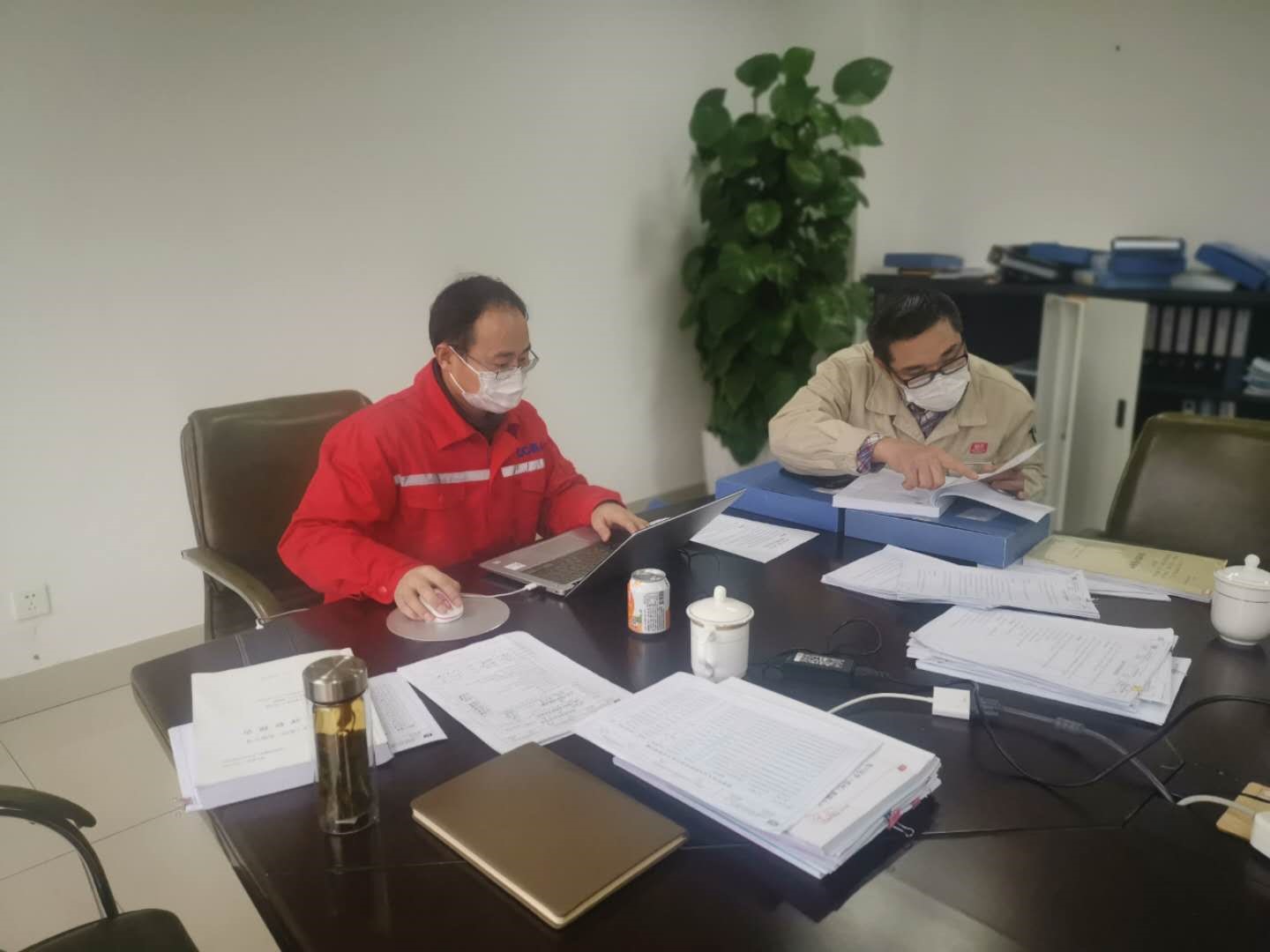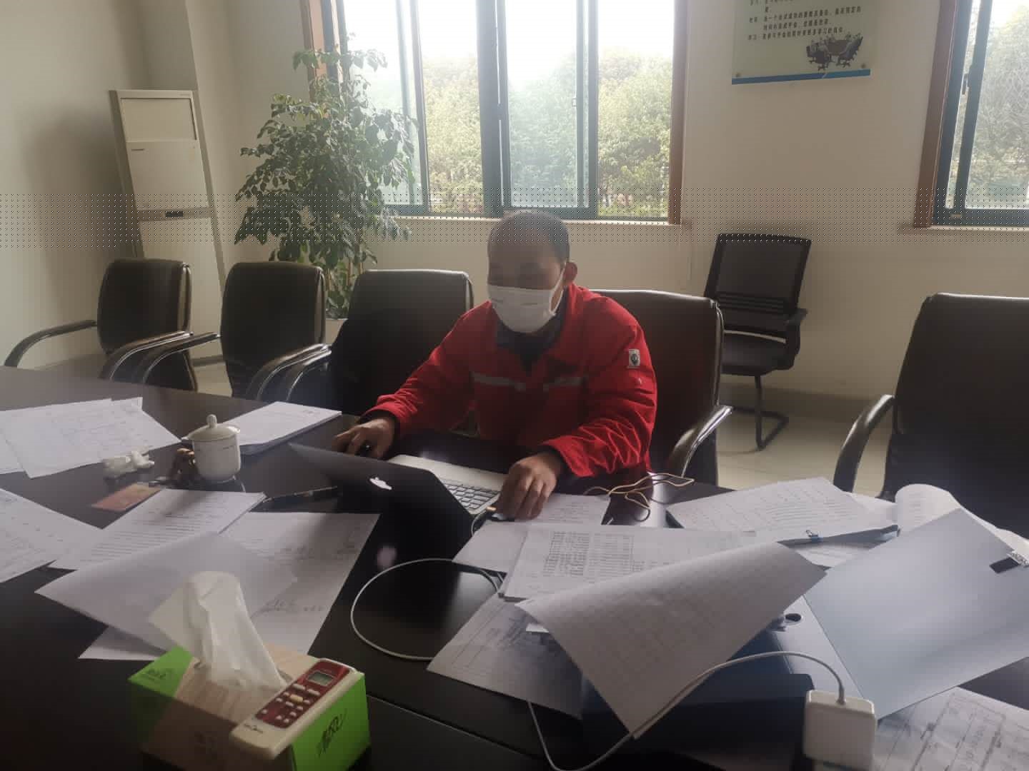 经过两小时车程到达企业后,李同斌、范志磊、蒋龚兴、王立群、王涛涛等协会专家依次在企业门口进行消毒、测温、登记。由于疫情的原因,核查工作首次会议内容已通过电话和微信交流方式提前进行了沟通,5名专家直接分两个会议室开展工作。
