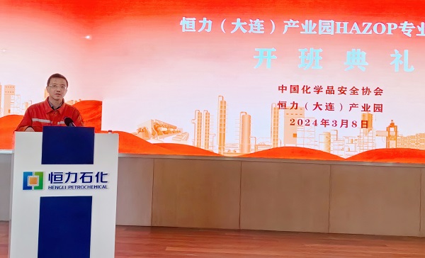 3月8日, 由中国化学品安全协会教培中心承办的恒力石化HAZOP专业培训班举行开班典礼。中化协总工程师程长进、恒力石化副总经理倪海华参加典礼并致辞。
