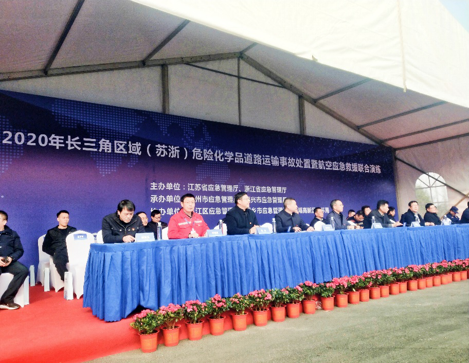 12月27日,江苏省应急管理厅、浙江省应急管理厅联合举行2020年长三角区域(苏浙)危险化学品道路运输事故处置暨航空应急救援联合演练。中国化学品安全协会派出专家,现场观摩、指导和点评了本次演练。