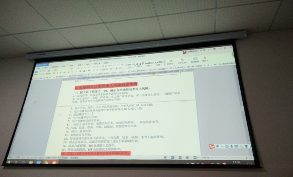 3月19日至23日,协会派员到山东垦利石化公司助力双控机制构建工作。根据《国务院安委会办公室关于印发标本兼治遏制重特大事故工作指南的通知》(安委办〔2016〕3号)以及山东省人民政府办公厅关于印发《山东省标本兼治遏制重特大事故工作指导方案的通知》(鲁政办发〔2016〕32号)的要求, 垦利石化自2018年以来,在2017年度风险管理及隐患排查管理工作的基础上,依据《安全生产风险分级管控体系通则》(DB37/T2882-2016)、《化工企业安全生产风险分级管控体系细则》(DB37/T2971-2017)等地方标准,公司安全生产部组织公司各车间风险评价小组成员,对2017年度公司中等以上风险的管控措施有效性进行了评估。