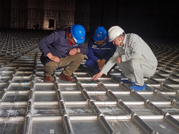 专家在施工现场查看了正在建设中的薄膜储罐建设情况,了解储罐施工和焊接要点,查看了投入使用的4座储罐的安全运行情况,并与企业陪同人员就如何做好施工安全与运行安全管理进行了交流。