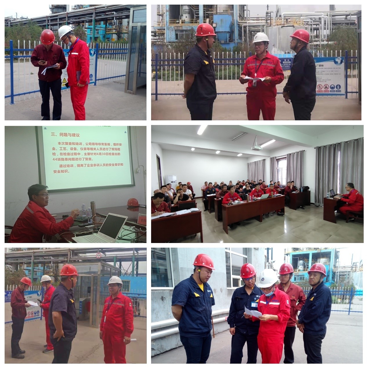 6月26日,三位专家在赵开荣主任的带领下,对4月30日检查出的44项隐患问题进行了复查。6月27日上午,党员专家田军进行用火作业培训,培训内容包括:用火作业基本要求、用火作业常见不符合项、规范的用火作业、常用的法律法规、典型案例等,企业各车间、科室近50人参加了培训。培训结束后,参训学员进行了考试。