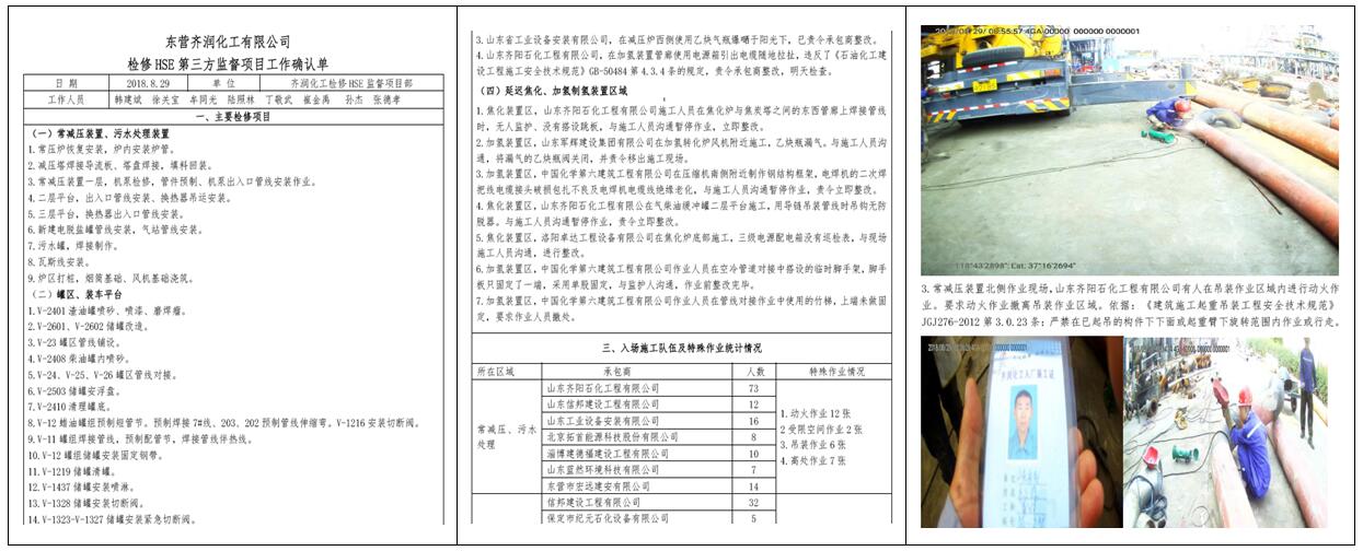 东营齐润化工有限公司领导高度重视此次检修安全,要求公司各部门在工作上与协会监督工程师无缝对接,在生活上将协会监督工程师作为公司一员全力保障,同时将协会检查问题与公司绩效考核紧密挂钩,为协会检修HSE第三方监督工作提供了坚实的后盾。