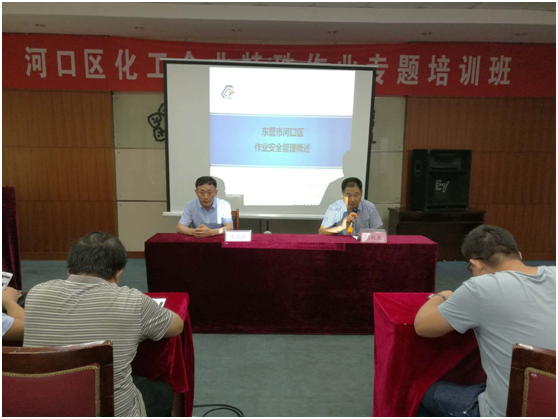河口区安监局刘兆星局长主持开班仪式并发表讲话。他指出,中国化学品安全协会与河口安监局一直保持友好的合作关系,此次培训机会难得,希望参训人员严肃对待,利用此次机会掌握特殊作业的办理流程,避免由于特殊作业发生事故。