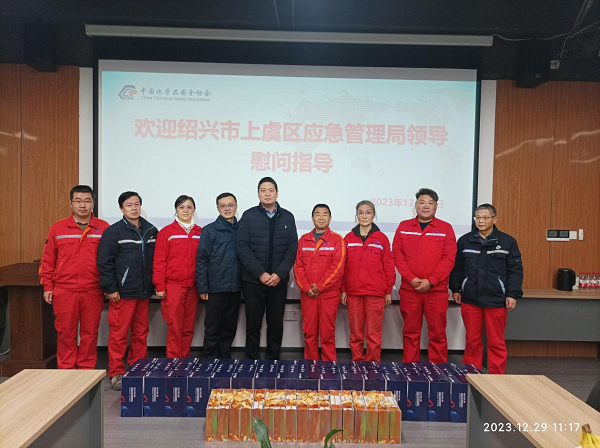 12月29日,绍兴市上虞区应急管理局总工程师任梁、危化监管科科长姚坚来到中化协上虞项目部慰问专家,对专家们为杭州湾经开区化工企业安全生产形势稳定作出的贡献表示感谢,并与项目部专家进行了座谈交流。
