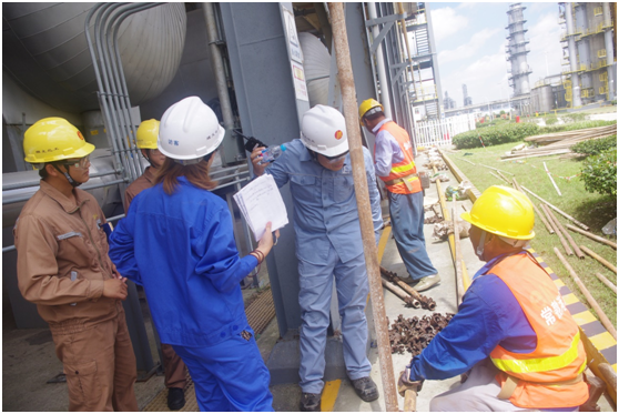 在前期准备期间,协会向企业索取了企业简介、安全生产责任制、安全管理网络图、安全评价报告等资料信息,结合企业性质、产品种类、生产规模及实际情况,合理安排了不同专业的评审人员,编制了详细的评估工作计划。评估组按评估计划,在召开评估首次会议后,首先检查了安全环保部、技术项目部、设备维保部等职能部门的关于安全标准化体系策划及运行有关的档案资料,继而深入各生产单位的控制室、生产装置、罐区、危险化学品仓库、装卸站等现场,实地检查生产装置稳定运行情况、安全设施完好情况。