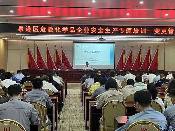 应泉州市泉港区应急管理局邀请,5月20日,中国化学品安全协会副总工程师兼技术一部主任张玉平围绕化工企业变更管理、《安全生产治本攻坚三年行动方案2024-2026年》开展专题培训。泉港区各乡镇街道安办主任,化工和危险化学品企业主要负责人、主管安全副总、主管生产副总、安全负责人参加培训。