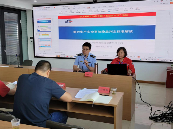 6月13日,衢州市衢江区应急管理局组织召开危险化学品企业安全环保工作会暨“安全生产月”安全警示教育会,中国化学品安全协会衢州项目部应邀为企业开展安全专题培训。