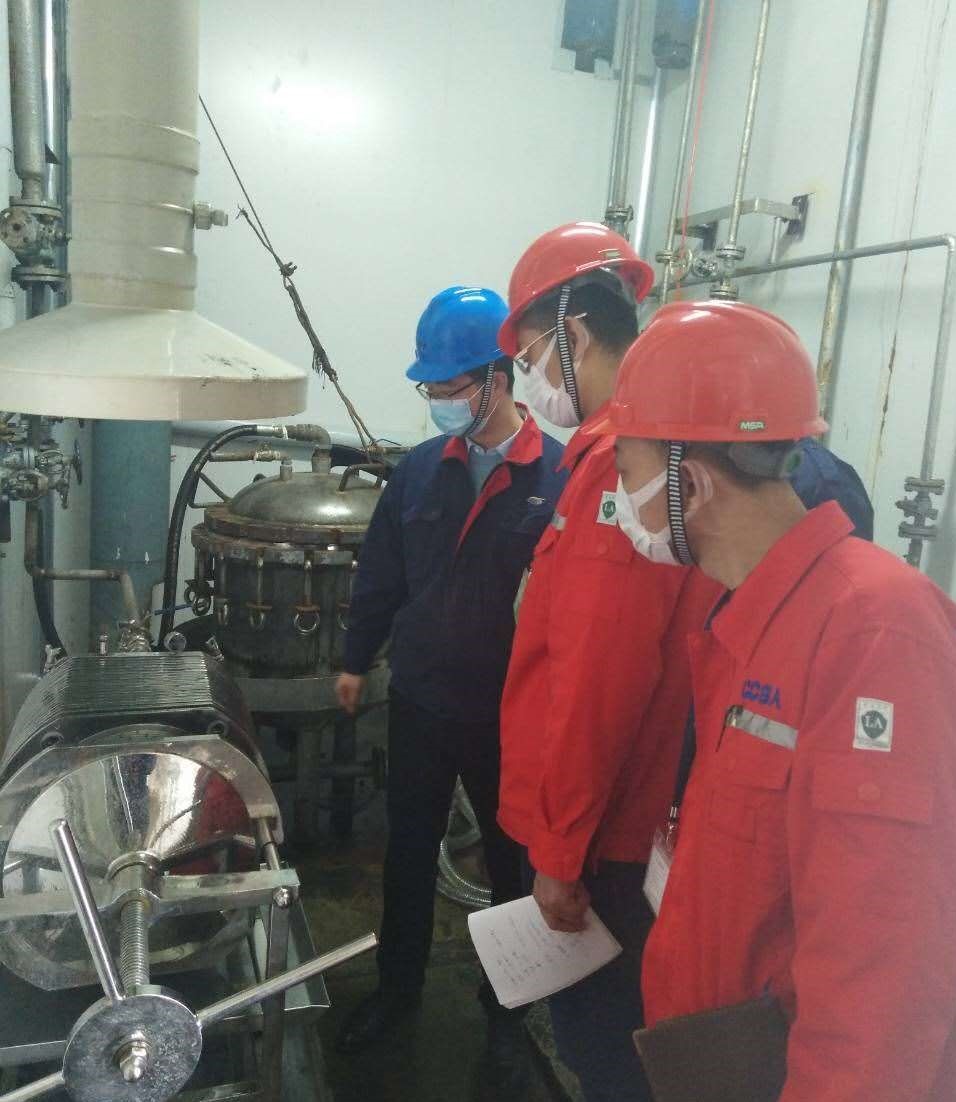 协会2位专家到苏州天马药业后,重点对法匹拉韦中间体生产中的加氢岗位进行检查,从人员资质、原辅料控制、设备和管道要求、安全注意要点等多方面进行了现场指导。