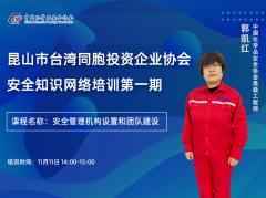 11月11日下午,中国化学品安全协会高级工程师郭凯红为昆山市台湾同胞投资企业协会会员单位开展了第一期安全知识网络培训。 第一期课程围绕安全管理机构设置和团队建设展开,主
