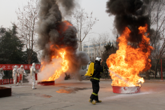 1月10日上午,一场特殊的消防演练在山东省淄博市高新区举行。两盆油桶内倒入了同样量的汽油和柴油,同时点火使其充分燃烧。其中一盆火焰由四具普通灭火器同时灭火,另一盆由一