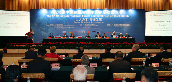 由中国国家安全监管总局和国际劳工组织共同主办的中国国际安全生产论坛和展览,已成功举办了五届。本届论坛的主题是“以人为本,安全发展”。来自国内外的政府官员、专家学者、企业界人士和国际组织代表共500人参加了论坛。