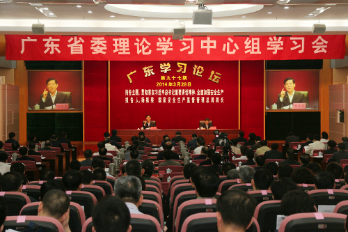 | 3月28日,广东省委理论学习中心组举办以“贯彻落实总书记重要讲话精神,全面加强安全生产工作”为主题的“广东学习论坛”,国家安全监管总局党组书记、局长杨栋梁应邀作辅导报告。 |