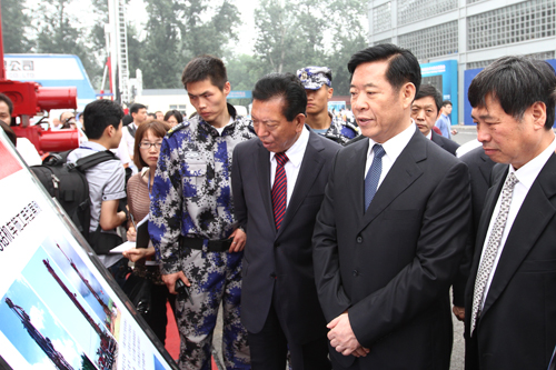 | 杨栋梁等国家安全监管总局、国家煤矿安监局、国家安全生产应急救援指挥中心领导和与会人员一起参观了应急技术与装备展览。 |