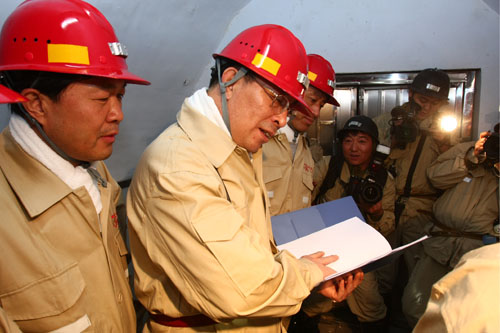 11月12日,国家安全生产监督管理总局局长骆琳一行深入冀中能源股份公司邢东煤矿井下-750多米的1121采掘工作面,认真查看井下生产一线安全生产工作,详细询问当班瓦斯浓度、采面风量、检测监控设施运行和矿领导下井带班等情况。