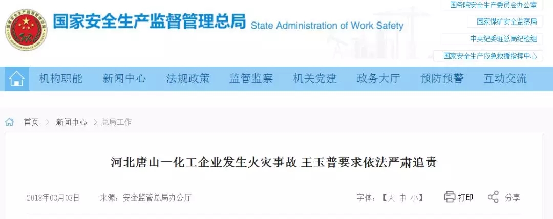 接到事故报告后,总局高度重视,党组书记、局长王玉普立即派员赶赴事故现场,指导协助地方政府全力做好伤员救治等事故处置工作,要求河北省安监局尽快查明事故原因,查清谎报情况,依法依规严肃迫责。