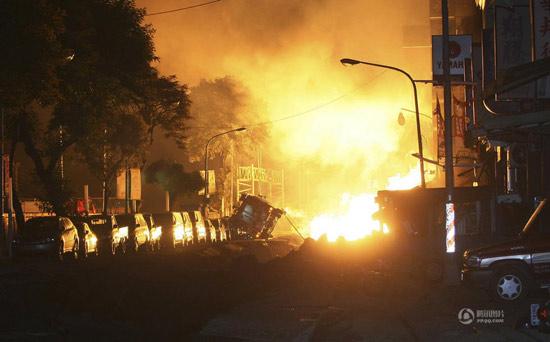 路面毁坏、路树倒了、汽车四脚朝天、摩托车也被炸到数米外,散落一地,凌乱的三多、凯旋路,面目全非,就像人间炼狱。