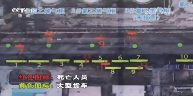 绝大多数死亡人员分布于310省道上,其中有很多分布于停在路边的货车中间,停靠大量装煤货车的省道与3个氯乙烯气柜仅一墙之隔。