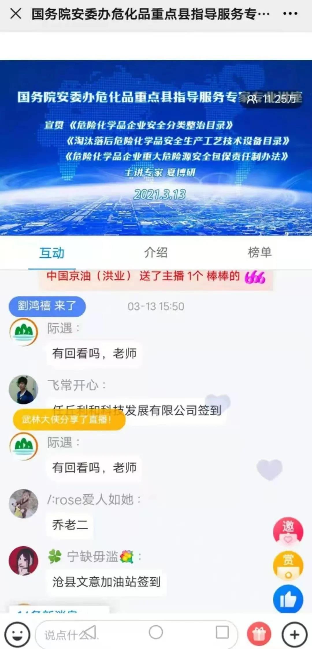 河北沧州渤海新区、石家庄循环化工园区、衡水高新技术产业开发区,山西省长治市潞城区,天津滨海新区,内蒙古阿拉善高新技术产业开发区等6个重点县或通过视频会议,或开展网络直播,线上线下相结合,将培训受众范围扩大到全市甚至全省,进一步提升培训效果。如河北衡水高新技术产业开发区的培训通过视频会议的形式开展,全市100家企业的2523人参加了培训。沧州渤海新区和阿拉善高新技术产业开发区则开通了网络直播,其中,全阿拉善盟的115家危化品企业人员及监管人员共计2500余人参加了培训;沧州市危化品安全监管监察人员、736家化工企业各层次人员、地方专家等进入直播间学习的人次则达到了11.4万人次。据不完全统计,第一批指导服务的问题反馈与培训覆盖了4800多家企业,学习人次超过12万,其中,安全监管人员参与学习近2000人次。