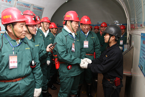 考察调研期间,杨栋梁到郑煤集团新郑煤电公司(赵家寨煤矿),在调度室与在井下现场带班的矿领导通话,并下井察看安全生产情况。他指出,加强煤矿安全生产工作要下决心深化小煤矿整顿关闭,要坚持标本兼治、源头治本,抓住要害,开阔思路,创新方式方法,实施部门联动,在现有的基础上,通过强有力的整顿关闭,进一步压减小煤矿数量,加快提高煤矿安全生产整体水平。