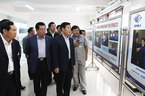河南郑州煤机集团公司是目前国内规模最大的煤矿综采支护设备专业生产企业。杨栋梁实地察看了生产流程,仔细了解具有自主知识产权的液压电控装置研制攻关情况,他指出,煤矿安全生产水平的提高必须依靠装备机械化、自动化,希望煤机制造企业针对我国煤矿的不同开采条件,加大煤机装备研制力度,为提高煤矿机械化水平做出不懈努力。