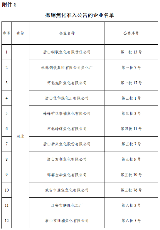 工业和信息化部10月9日公告了焦化准入企业动态调整情况,40家企业撤销准入公告。