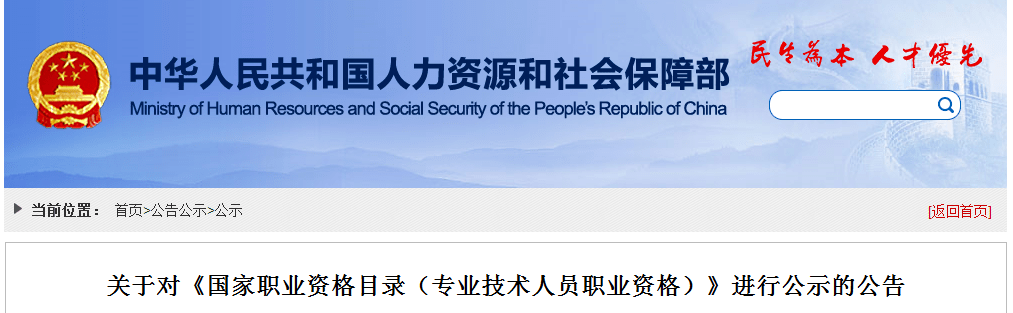 关于对《国家职业资格目录(专业技术人员职业资格)》进行公示的公告