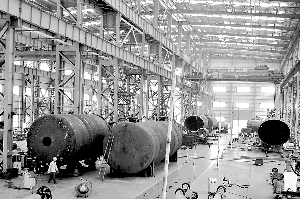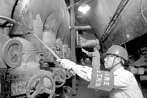 图为8月12日,该厂热电车间两名安全管理人员扫除制粉机粉尘。 (朱华南 摄)