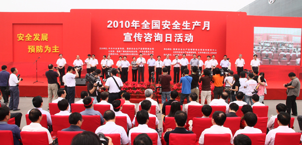 2010年全国“安全生产月”宣传咨询日活动在北京现代汽车有限公司举行。国家安全监管总局局长骆琳出席并致辞。 |