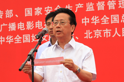 全国人大常委会副委员长陈昌智宣布2010年全国“安全生产月”宣传咨询日活动开始。安全监管总局局长骆琳和北京市人民政府副市长苟仲文分别致辞。安全监管总局副局长杨元元主持活动仪式。