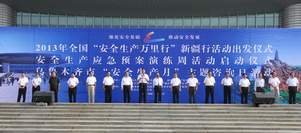 | 6月17日上午,2013年全国安全生产万里行新疆行、全国安全生产应急预案演练周启动仪式在新疆维吾尔自治区乌鲁木齐市举行。 |