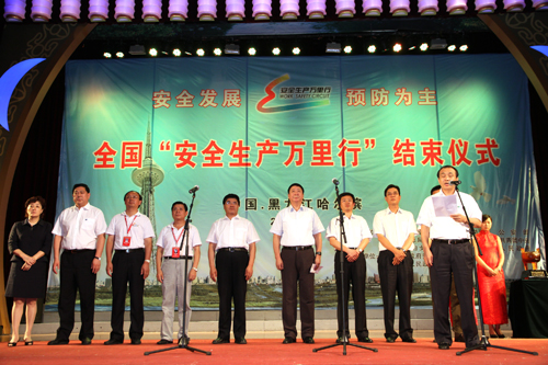 由中宣部、国家安全监管总局、公安部、国家广电总局、全国总工会、共青团中央、全国妇联及广西壮族自治区、黑龙江省人民政府共同组织的第13次全国安全生产万里行活动, 7月4日在黑龙江省哈尔滨市落下帷幕。国家安全监管总局副局长杨元元、黑龙江省副省长王玉普参加结束仪式并讲话。 |