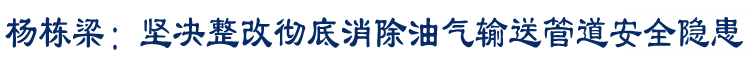杨栋梁在全国油气输送管道隐患整治攻坚战动员部署视频会议要求: 坚决整改彻底消除油气输送管道安全隐患 11月24日,国务院安委会办公室、国家安全监管总局召开全国油气输送管道隐